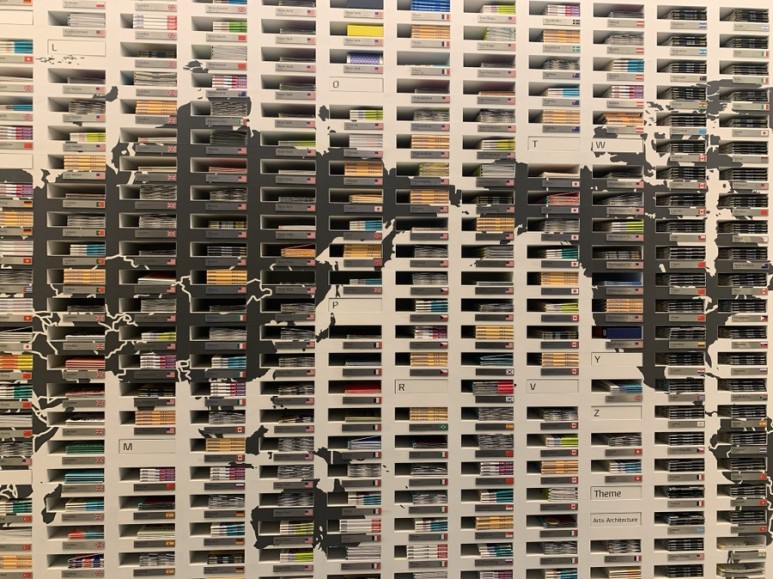 칸칸이 여행 지도가 꽂힌 벽장