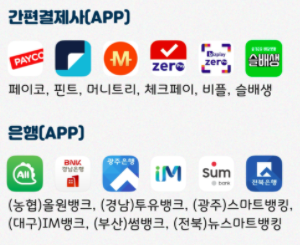 삼성페이, 카카오페이, 신용카드 앱 결제 등