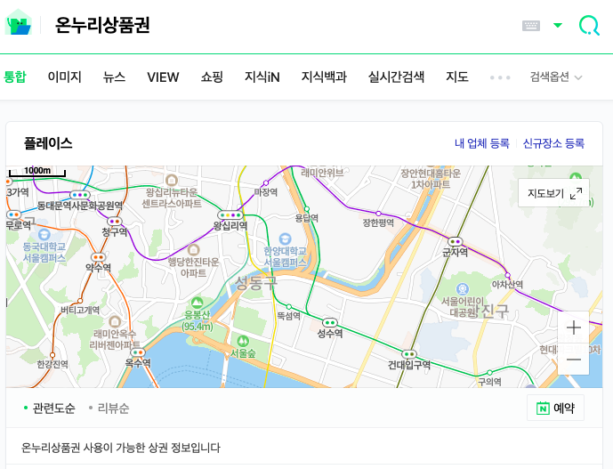 이미지처럼 플레이스로 바로 사용처들이 나오고