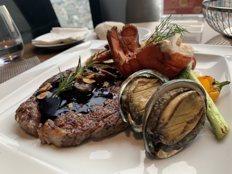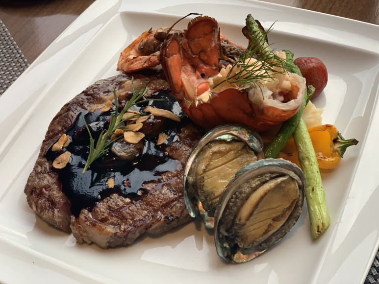스테이크, 전복, 랍스터, 아스파라거스, 감자퓨레로