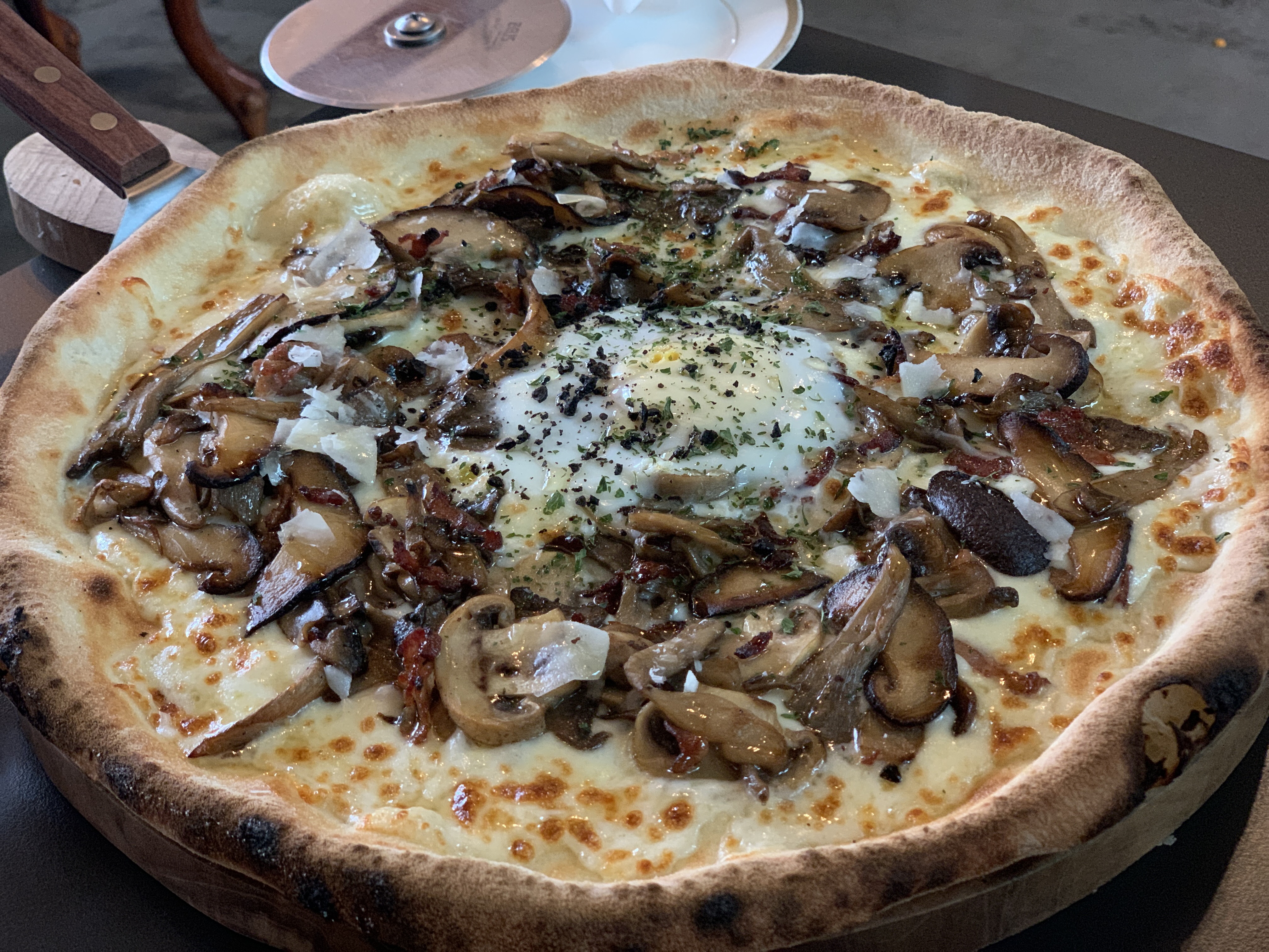 시그니쳐 메뉴인 골든 에그 머쉬룸 피자!
