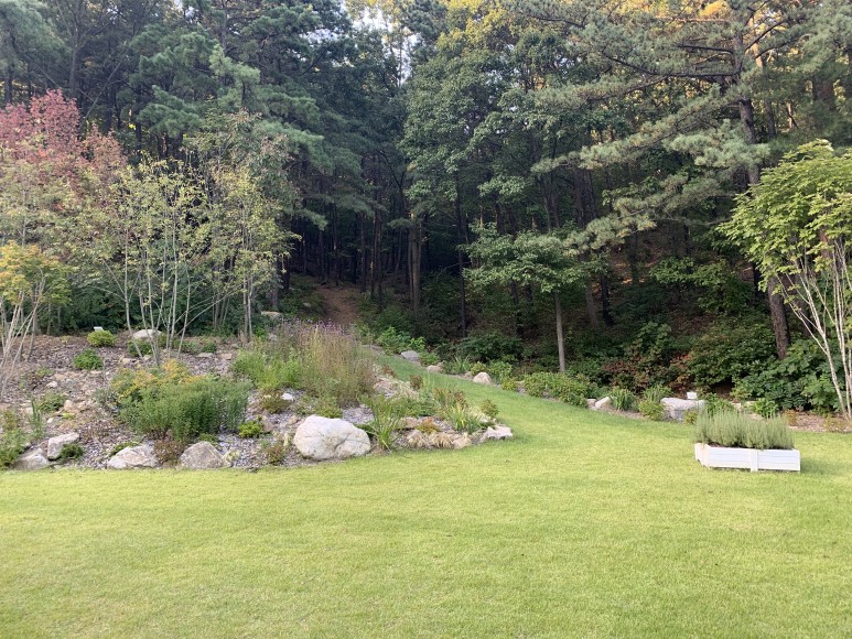아래 데크와 잘 꾸며놓은 조경도 예쁘다.