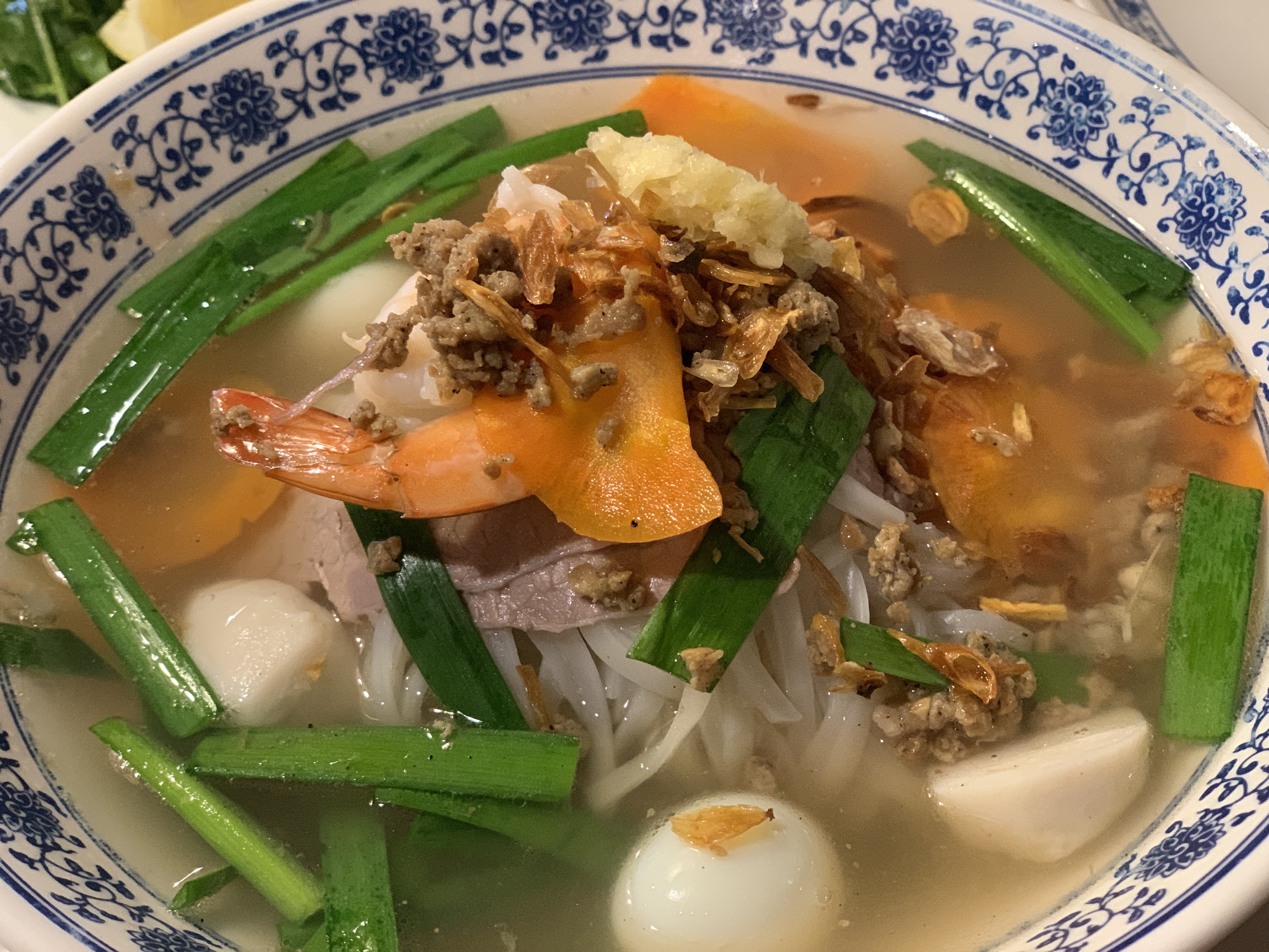흔히 먹던 특유의 새콤한 향신료 맛이 나는 쌀국수와는 조금 다른 호치민식 쌀국수. 쌀국수와 칼국수 사이의 국물 농도와 맛이랄까. 맛은 만족스러웠고 나름 신선한 경험이었다. 하지만 내 취향은 퍼보에 조금 더 가까우므로 다음엔 퍼보를 먹어보고 싶다.