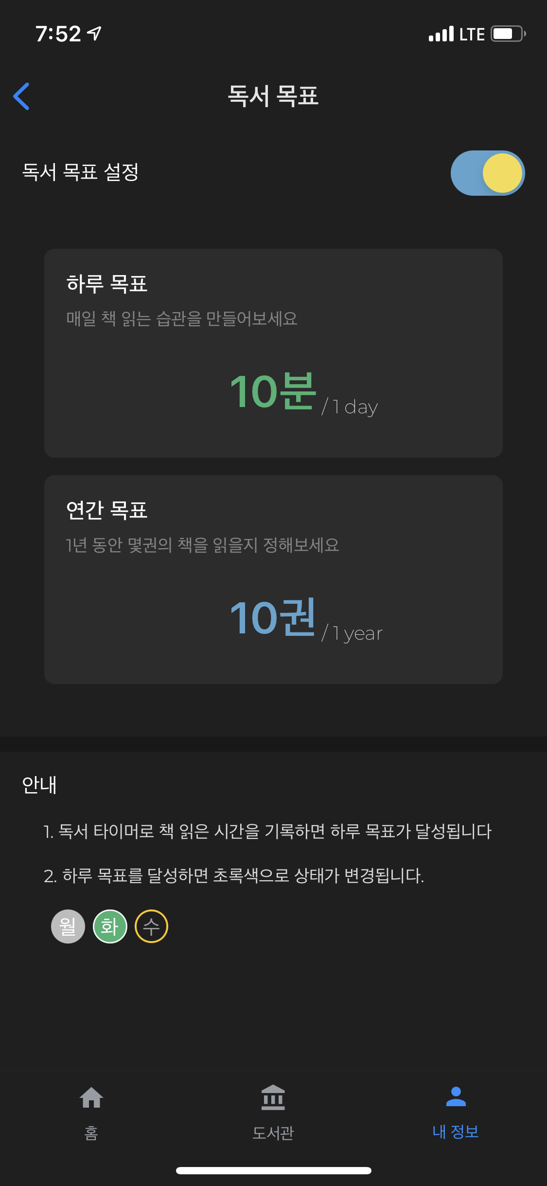 나의 독서 기록을 확인할 수 있는 내 정보 화면이다. 왓챠처럼 서로 팔로워하고 교류하는 기능도 있는데 난 사용하지 않는다. 아마 리뷰나 관심 책을 볼 수 있지 않을까 싶다.