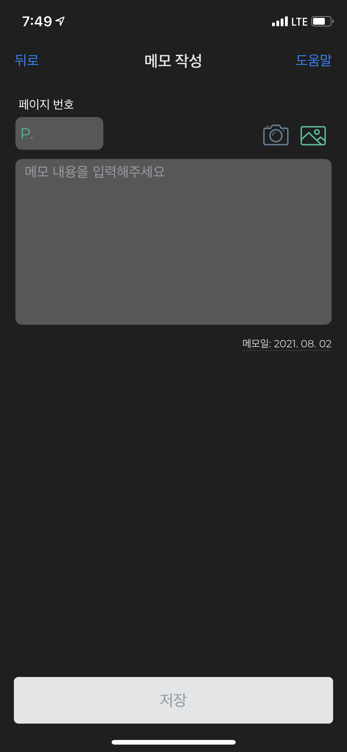 (하단 사진 참고) 페이지에 해당하는 메모, 사진 촬영 혹은 찍은 사진을 업로드 할 수 있다.