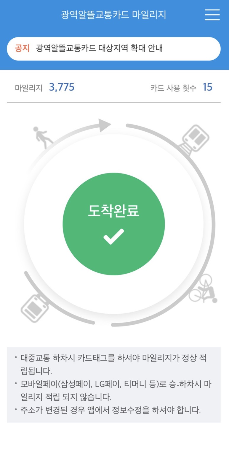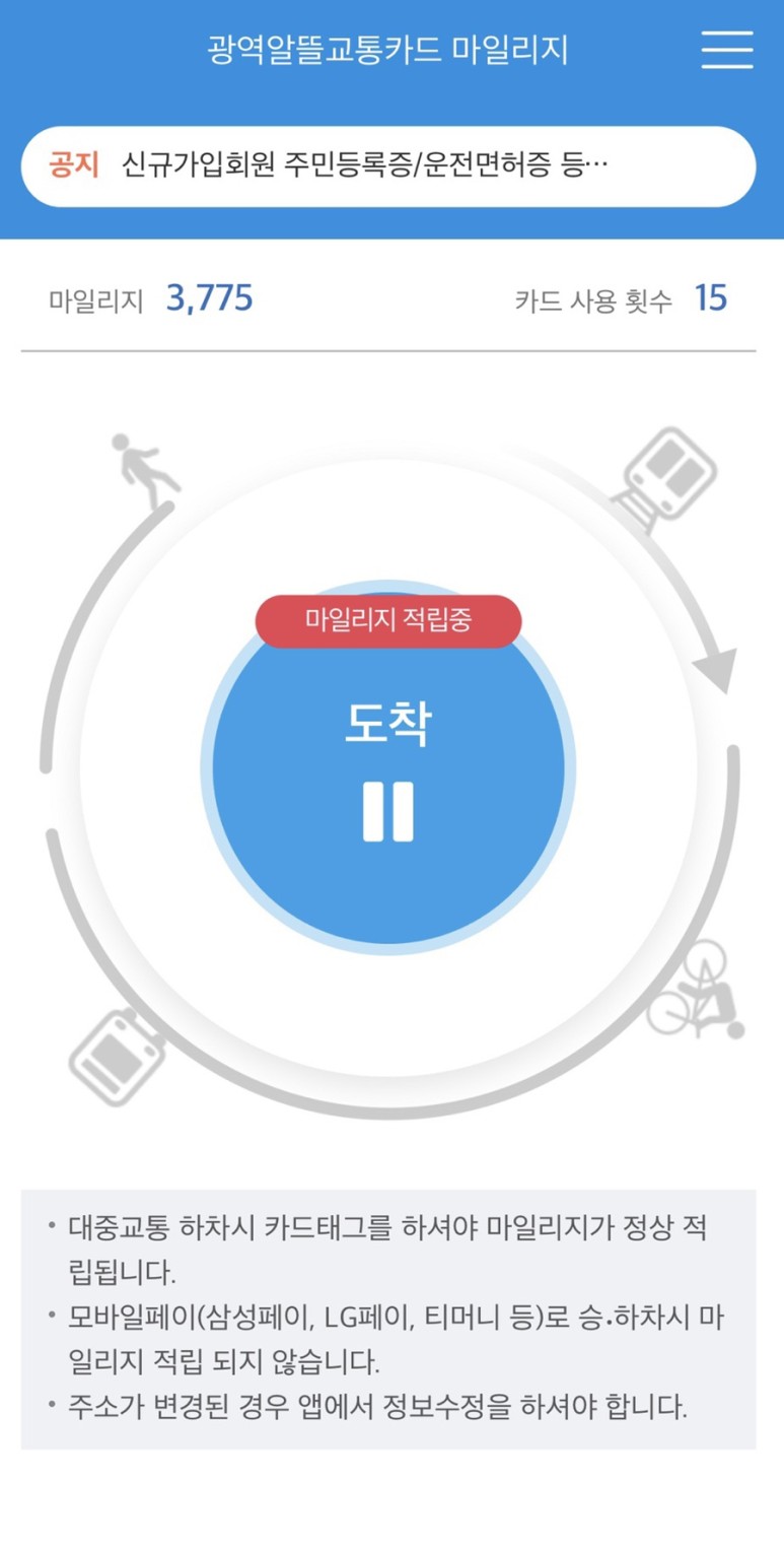 광역알뜰교통카드 마일리지 적립