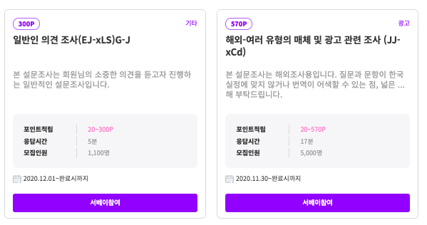 서베이는 다 참여할 수 있는건 아니고