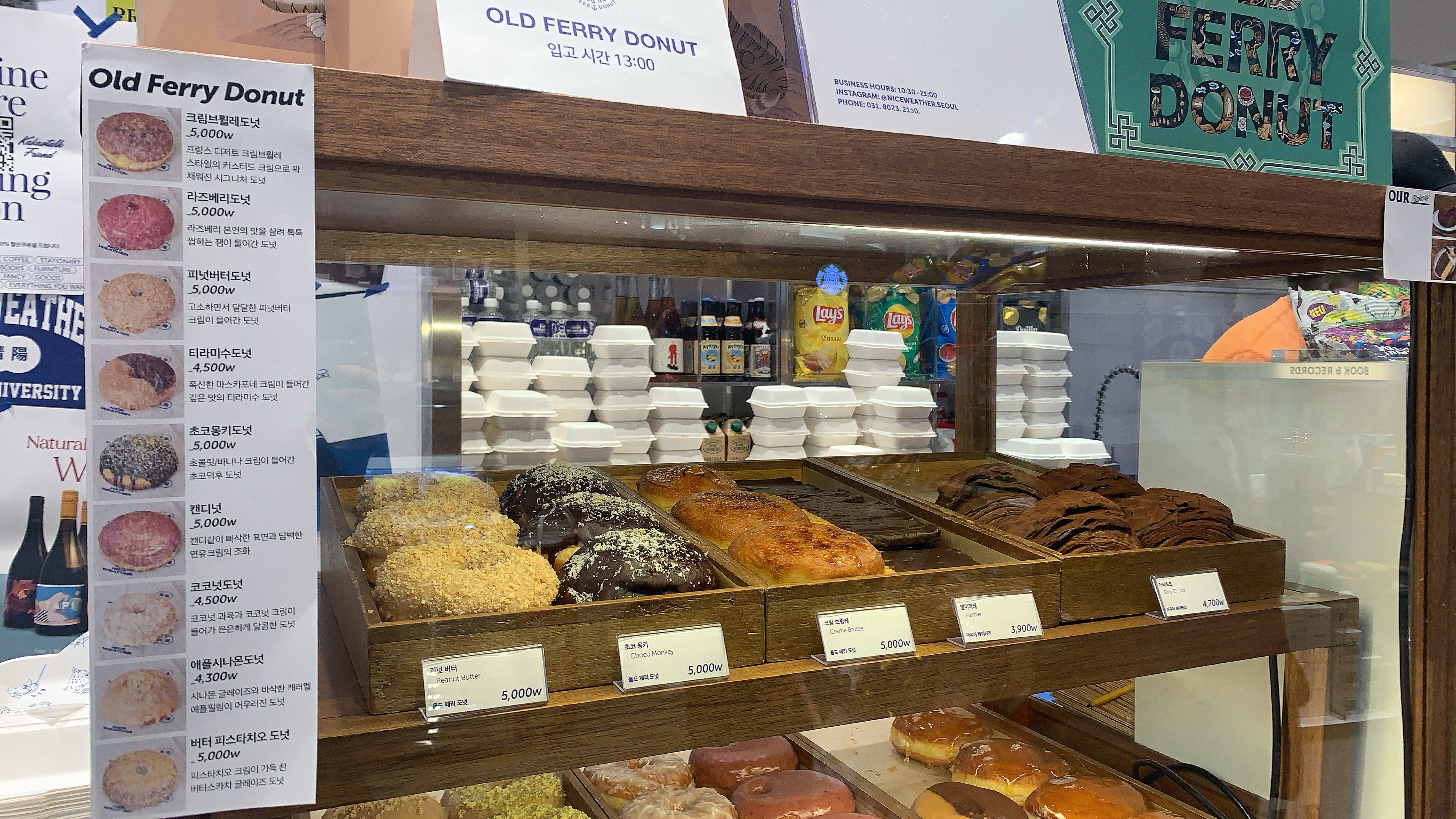 뭐니 뭐니 해도 나이스웨더를 방문하는 목적 1위는 올드페리 도넛일 것이다. 한남동의 유명한 도넛 카페 '올드페리도넛'을 나이스웨더에서 만나볼 수 있다.