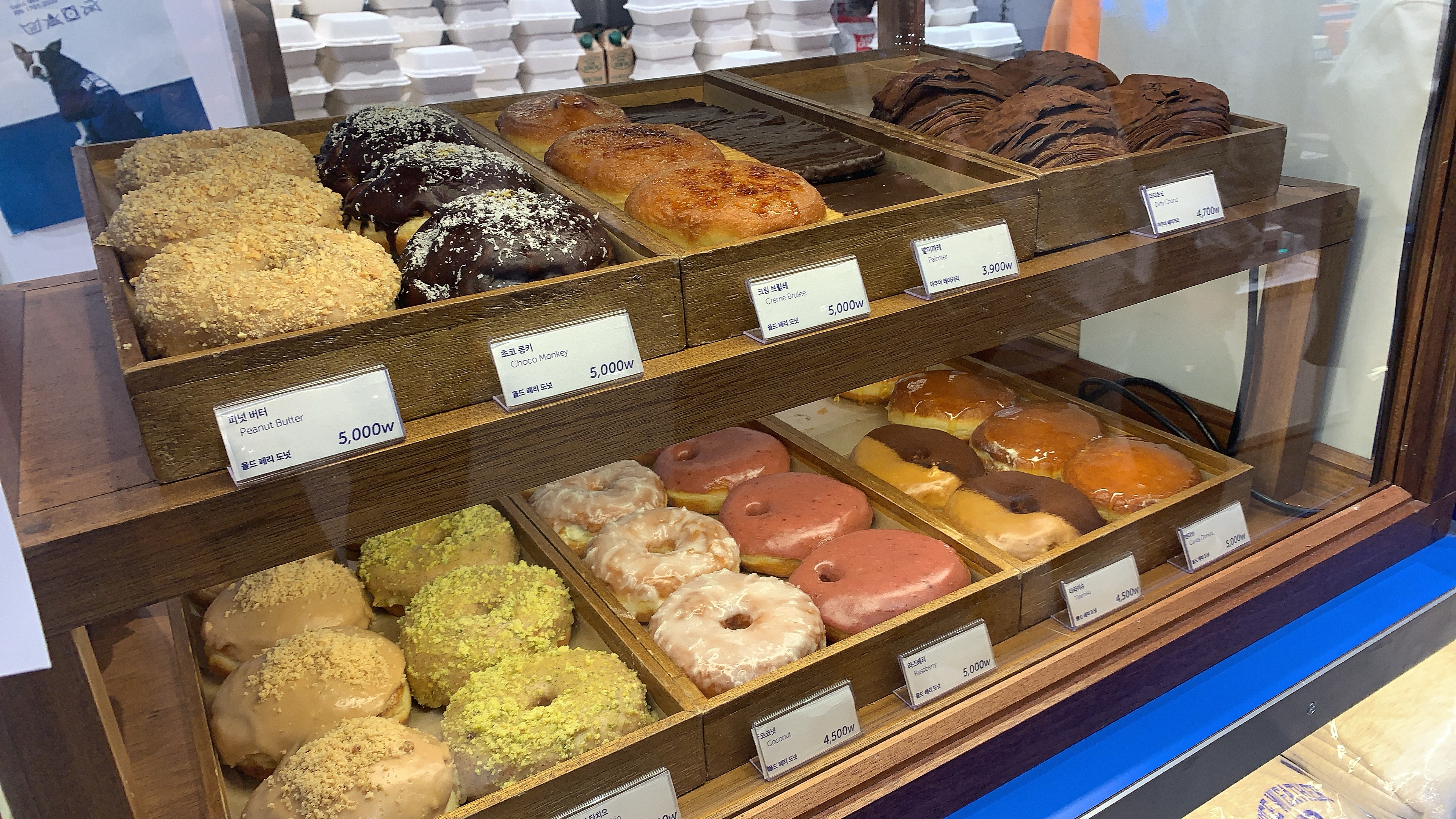 이제 보니 입고 시간이 있었다. 오전에 한 번 오후에 한 번 입고되는 것일까? 나는 열두시쯤 방문했는데 도넛이 가득 차 있었다.