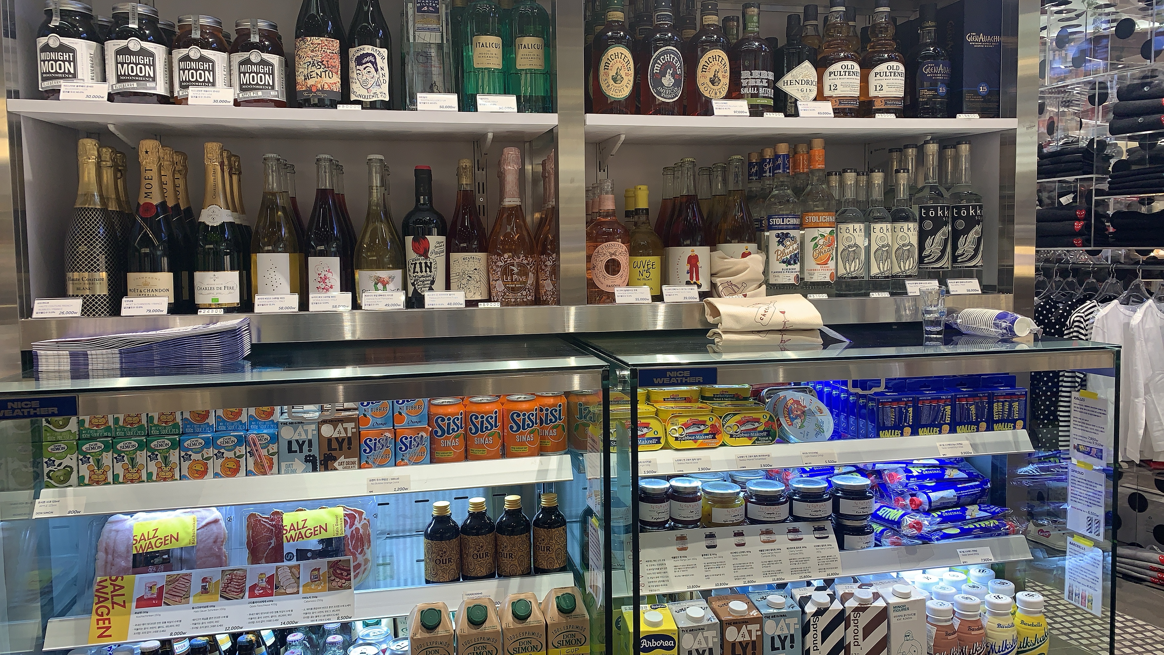 편의점답게 곳곳에 주전부리들이 가득했다. 와인도 팔고 이케아에서 보고 패키지가 귀엽다고 생각했던 오트밀 음료(?)도 팔고 있다. 뭔가 미쿡 느낌 물씬 나는 과자들이 많다.