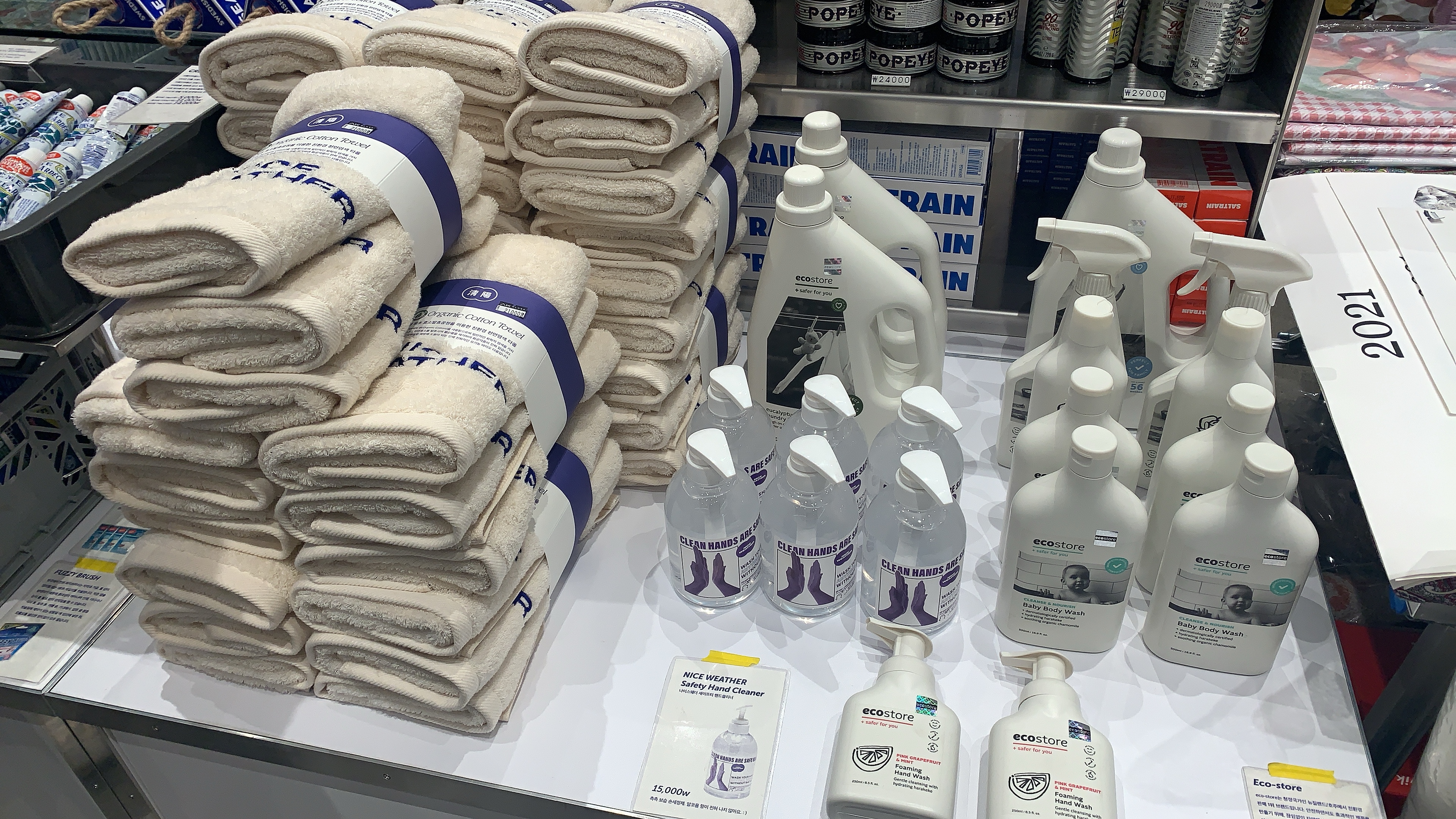 이름부터 에코스토어, 친환경 브랜드인듯 백색의 패키지들이 눈에 띄었다. 수건이 좀 탐이 났다.